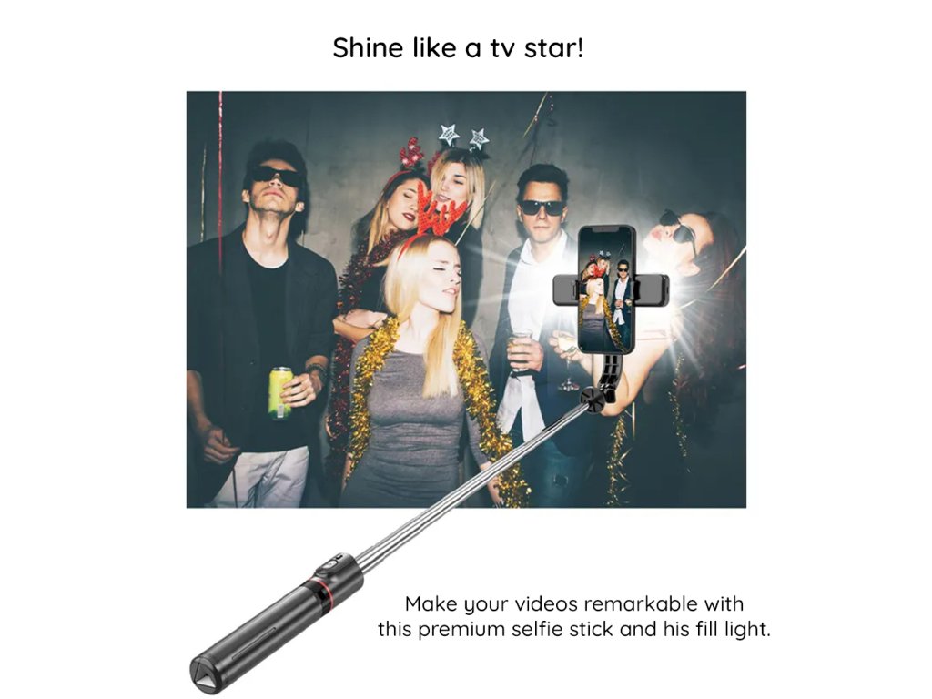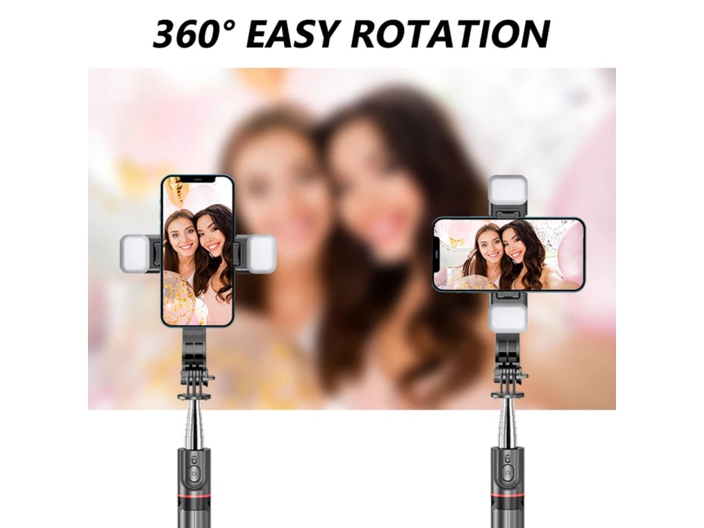 Vyber si nový selfie stick s LED svetlom, ktoré ti dodá jas vždy, keď chceš. Tento selfie stick s bleskom je ideálny pre chvíle, keď si na párty a chceš nočné selfíčka. Zmeň atmosféru podľa svojich predstáv a budeš mať selfie stick s diaľkovým ovládaním pripravený vyhovieť ti.