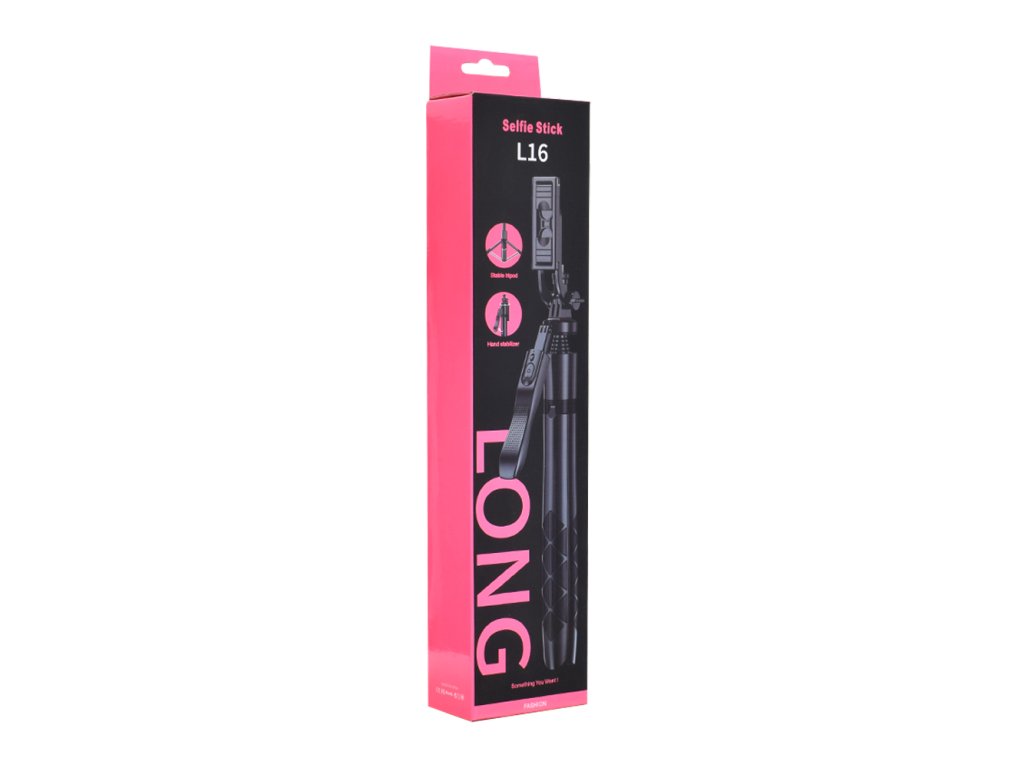 Techsuit - Selfie Stick (L16) selfie tyč so stabilným statívom, 1/4" závit, bezdrôtové diaľkové ovládanie, stabilizovaný záber, 157 cm – čierna