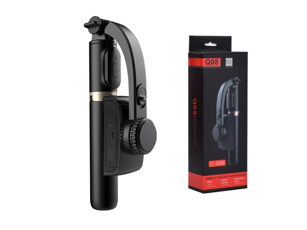 Techsuit - Selfie Stick (Q08) selfie tyč s anti-shake statívom, Bluetooth diaľkové ovládanie, 360° rotácia, hliníková zliatina, 75 cm – čierna