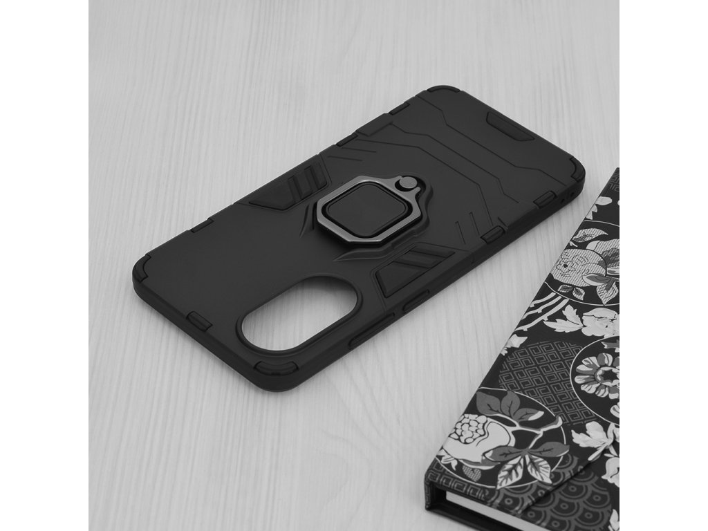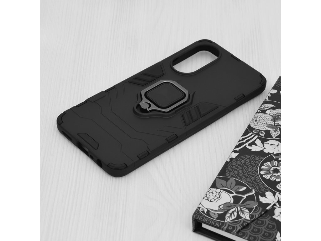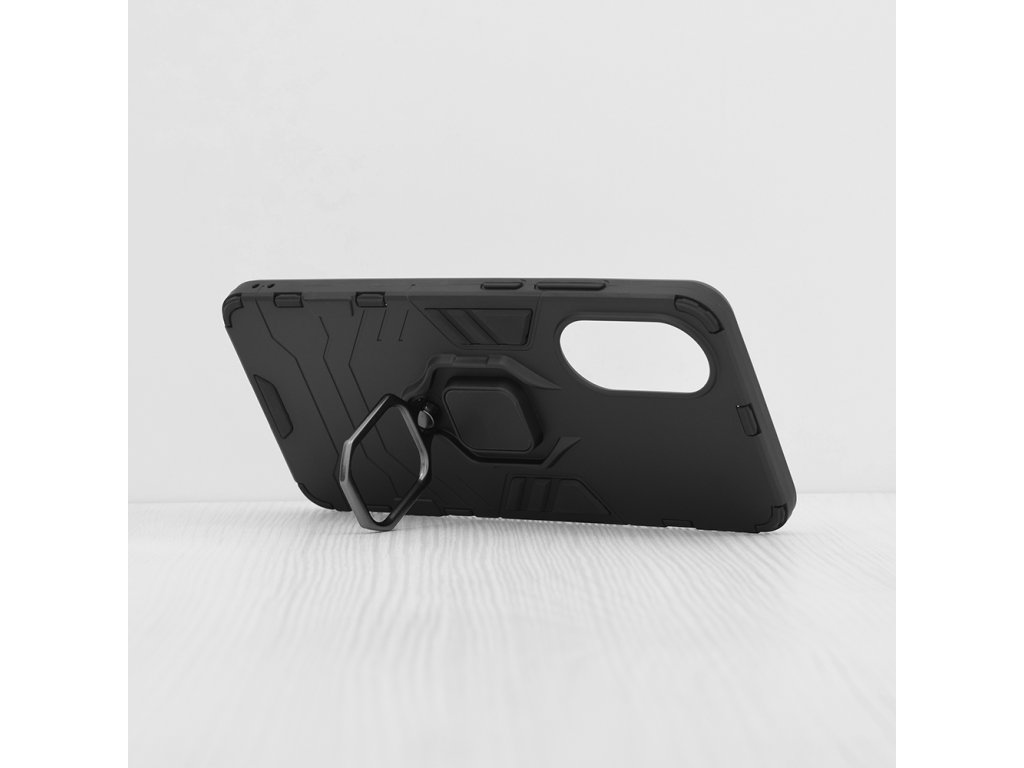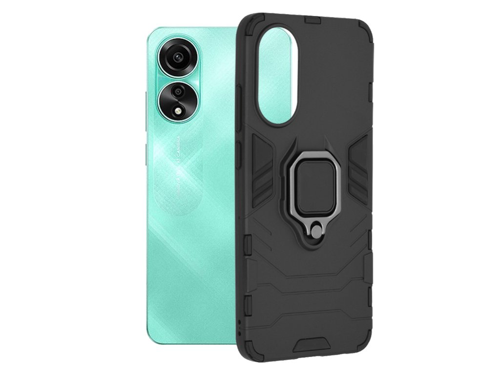 Puzdro Oppo A78 4G je vybavené kruhom pre telefón , ktorý funguje aj ako stolový stojan. Obsahuje kovovú platničku pre magnetické auto držiaky.