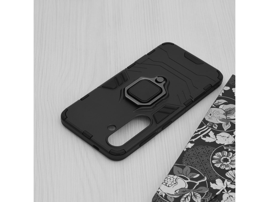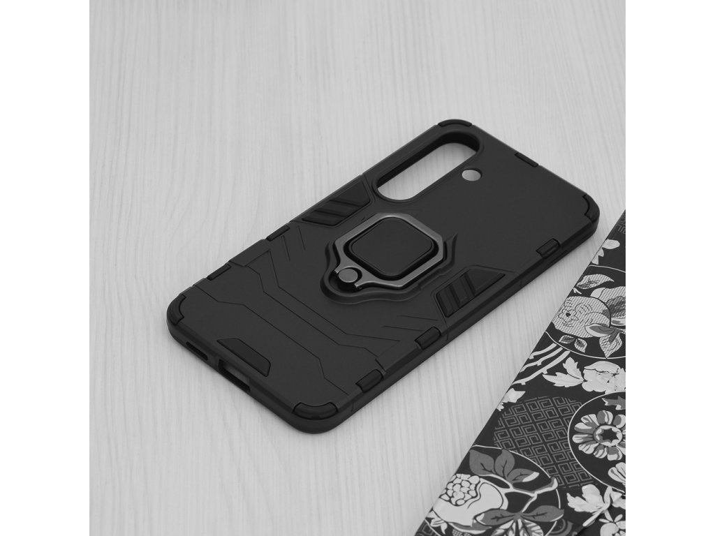 Púzdro Samsung Galaxy S24 je vybavené krúžkom pre telefón ktorý slúži aj ako stojan na stôl. Obsahuje kovovú platňu pre magnetické auto držiaky.