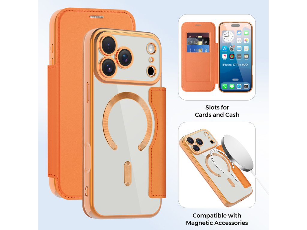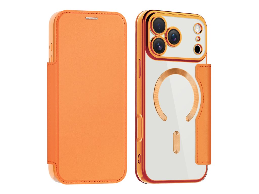 Techsuit - SmartMag Book Case magnetický knižkový obal pre iPhone 17 Pro Max – oranžový