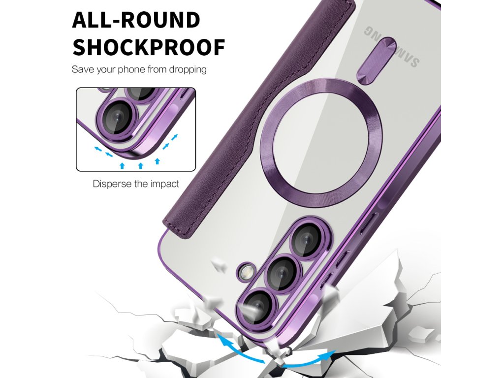 Puzdro Samsung Galaxy A57 5G peňaženka umožňuje okamžité zarovnanie s akýmkoľvek príslušenstvom MagSafe, bez kĺzania a bez interferencií.