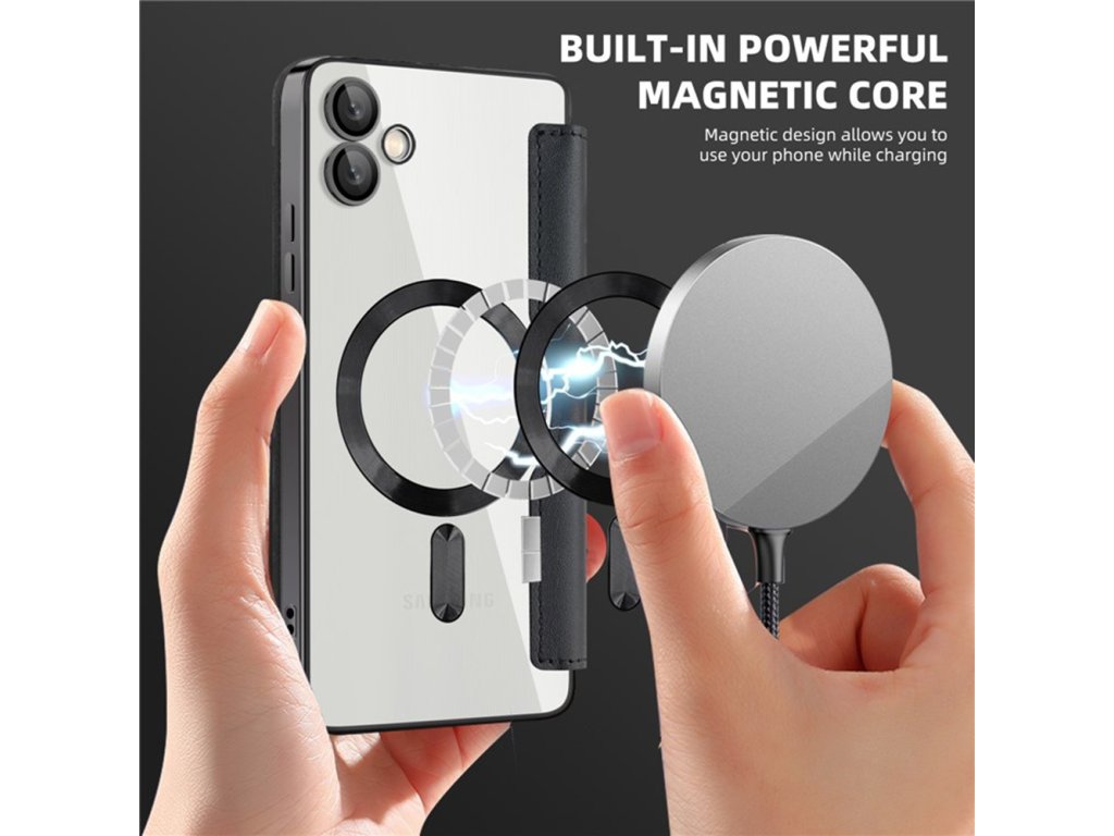 Puzdro Samsung Galaxy A05 na peňaženku umožňuje instantné zarovnanie s akýmkoľvek príslušenstvom MagSafe, bez kĺzania a bez rušení.
