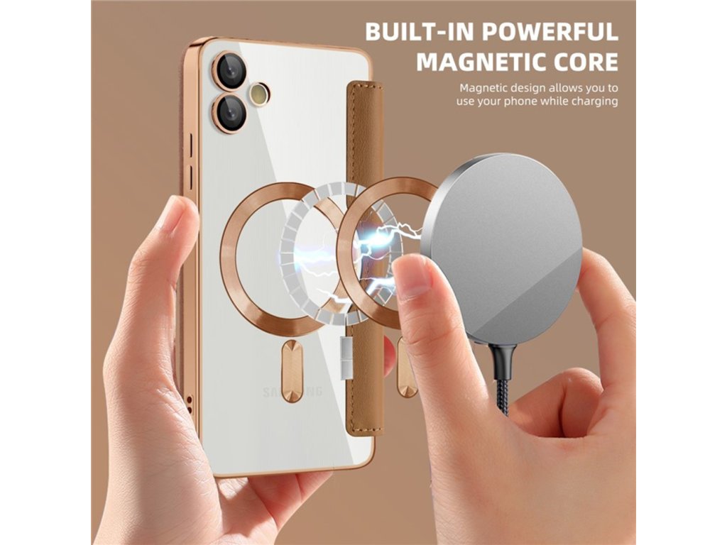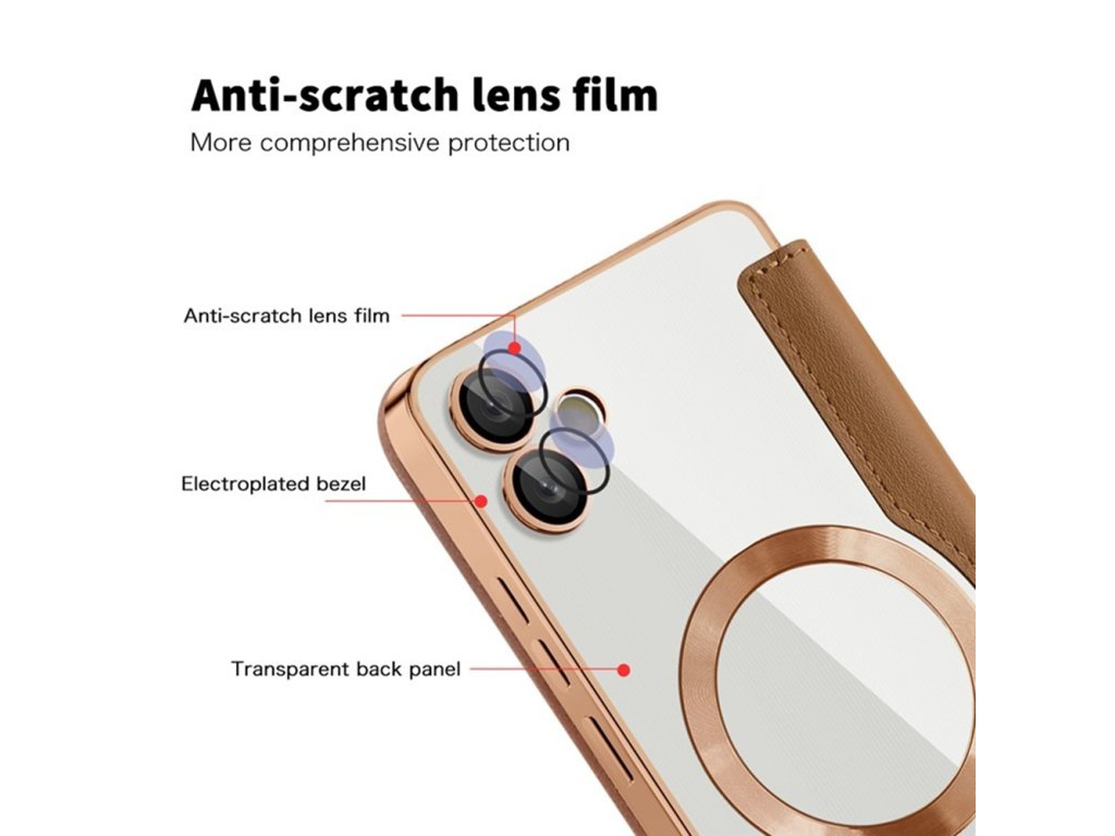 Puzdro Samsung Galaxy A05 na peňaženku umožňuje instantné zarovnanie s akýmkoľvek príslušenstvom MagSafe, bez kĺzania a bez rušení.
