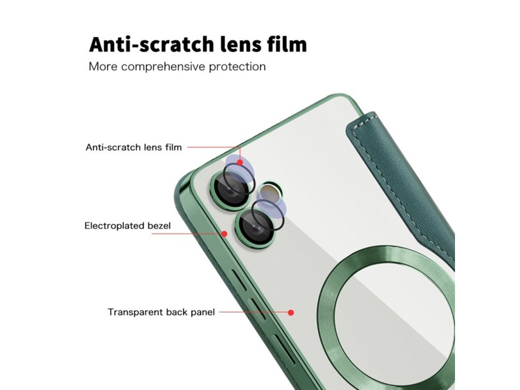 Puzdro Samsung Galaxy A05 na peňaženku umožňuje instantné zarovnanie s akýmkoľvek príslušenstvom MagSafe, bez kĺzania a bez rušení.
