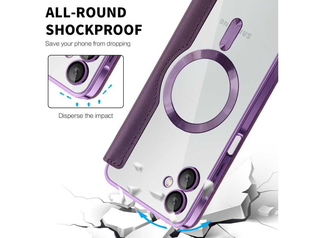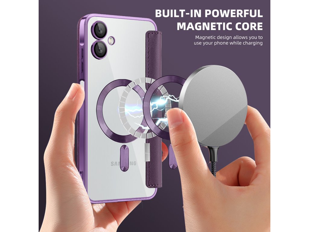 Puzdro Samsung Galaxy A06 peňaženka umožňuje okamžité zarovnanie s akýmkoľvek MagSafe príslušenstvom bez kĺzania a interferencií.