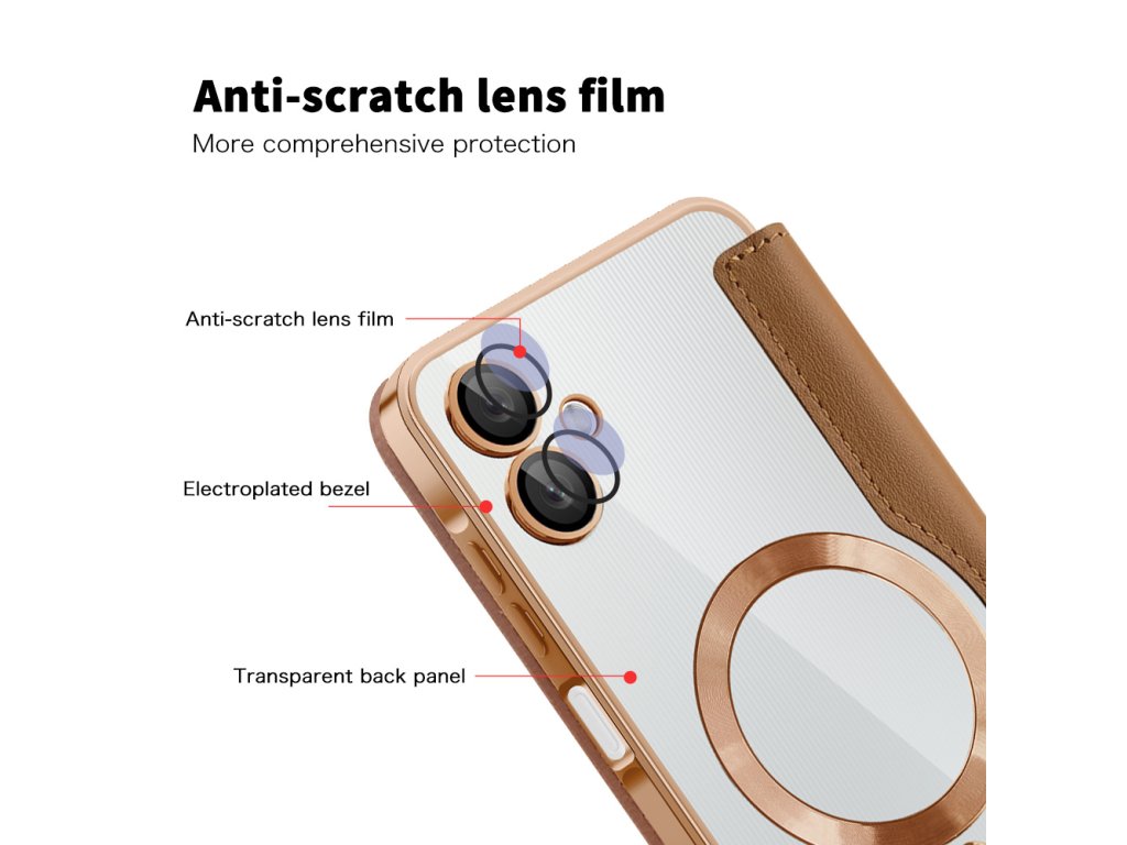 Puzdro Samsung Galaxy A06 peňaženka umožňuje okamžité zarovnanie s akýmkoľvek MagSafe príslušenstvom bez kĺzania a interferencií.