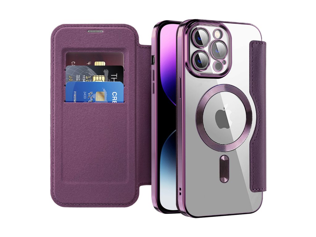 Techsuit - SmartMag Book puzdro na iPhone 14 Pro Max - fialové