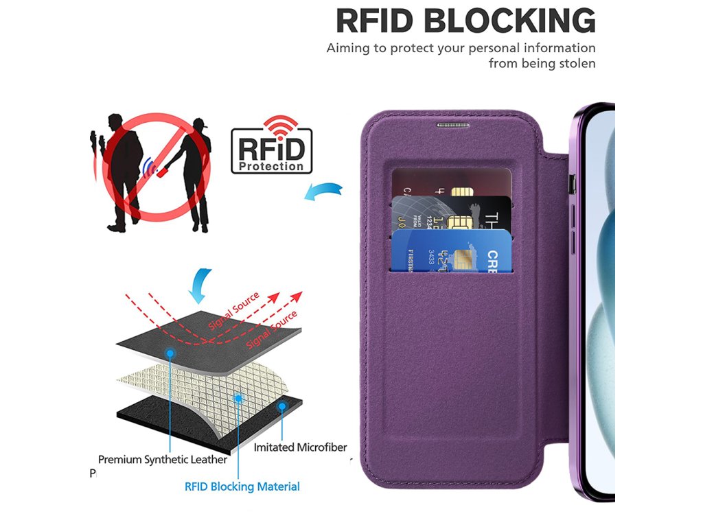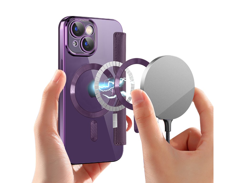 Techsuit - SmartMag Book puzdro na iPhone 15 - fialové