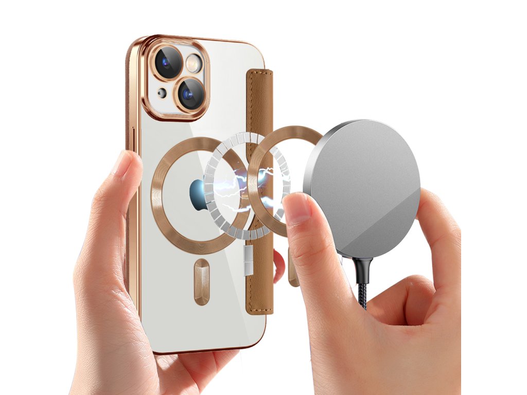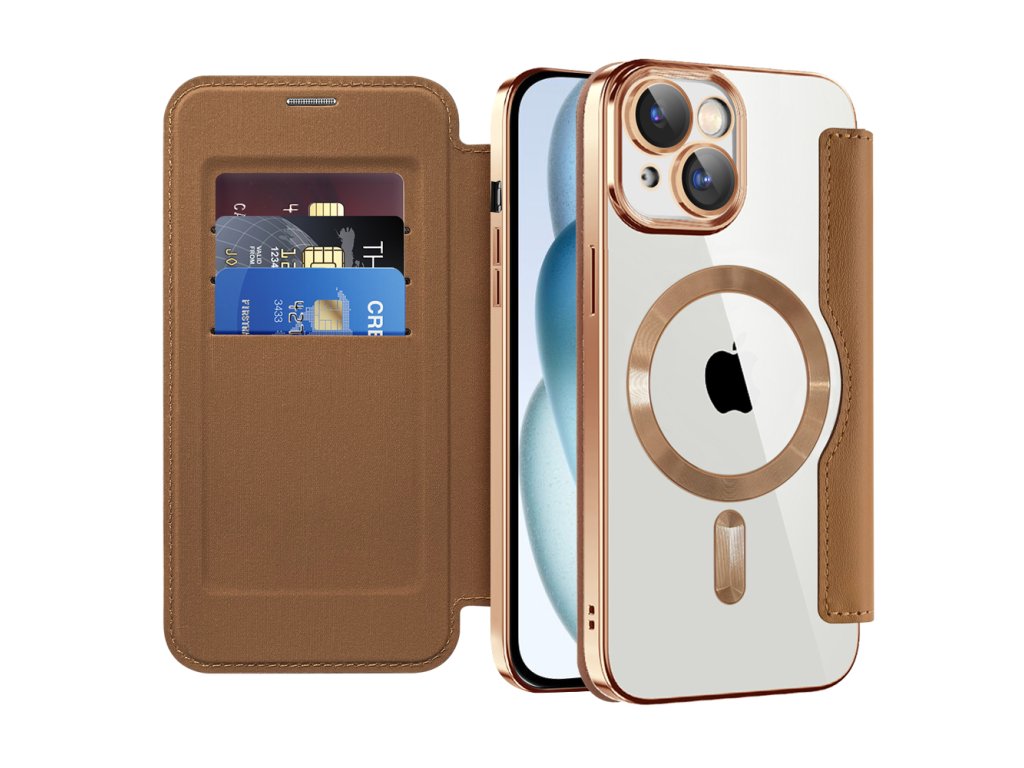 Techsuit - SmartMag Book puzdro na iPhone 15 Plus - hnedé