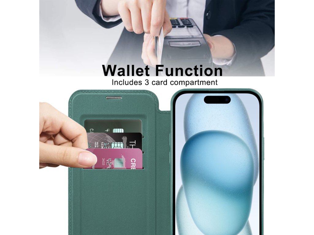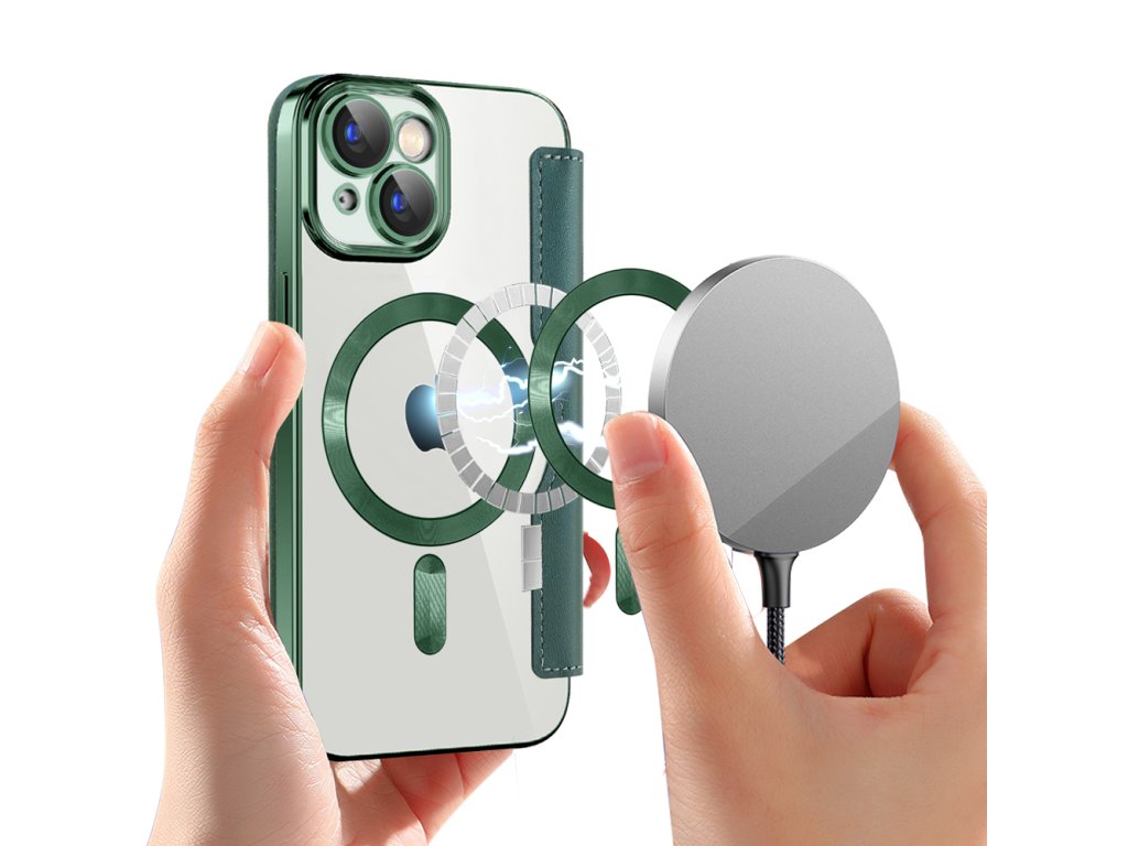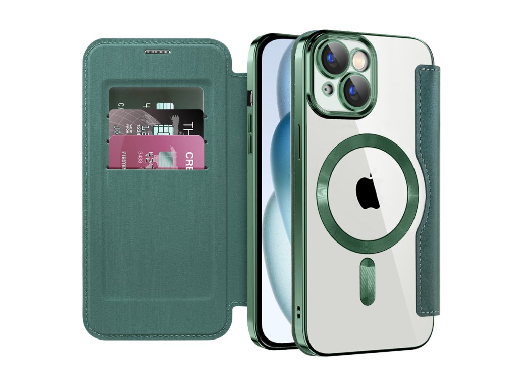 Techsuit - SmartMag Book puzdro na iPhone 15 Plus - zelené