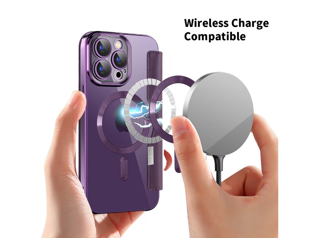 Puzdro iPhone 15 Pro peňaženka umožňuje okamžitú zarovnanie s akýmkoľvek príslušenstvom MagSafe, bez sklzu a bez interferencie.