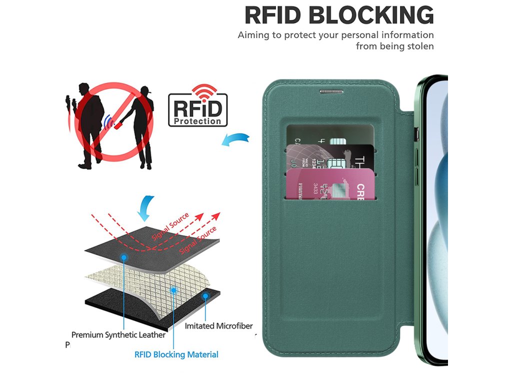 Určené na ukladanie bankových alebo prístupových kariet, tento priestor blokuje nechcené skenovania, poskytujúc digitálnu bezpečnosť.