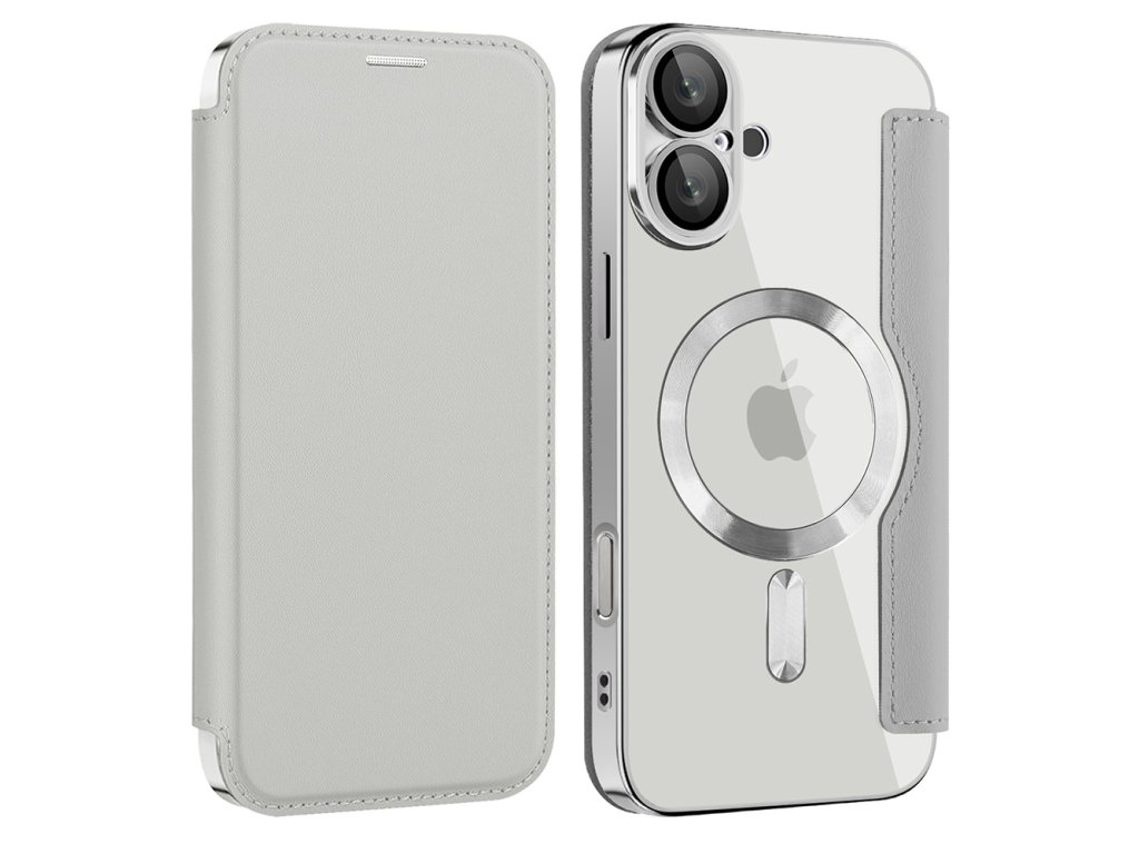 Techsuit - SmartMag Book puzdro na iPhone 16 Plus - sivé