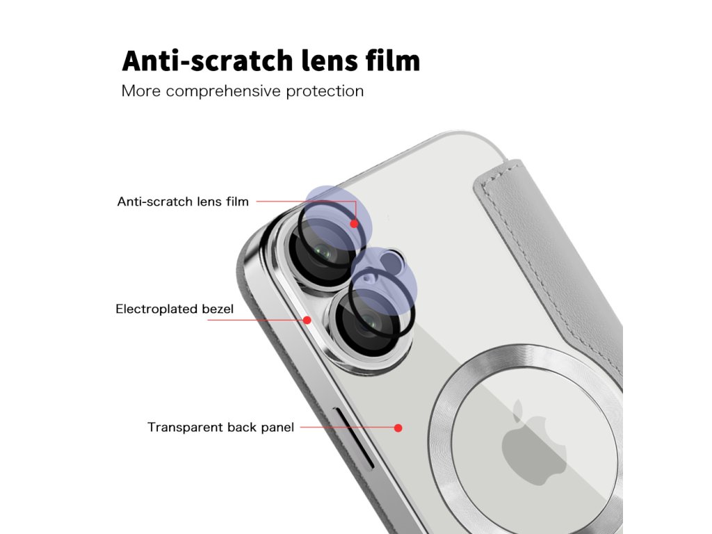 Tu je puzdro pre iPhone 16 Plus z ekologickej kože a TPU s transparentným povrchom, prerušovaným lesklými akcentmi.