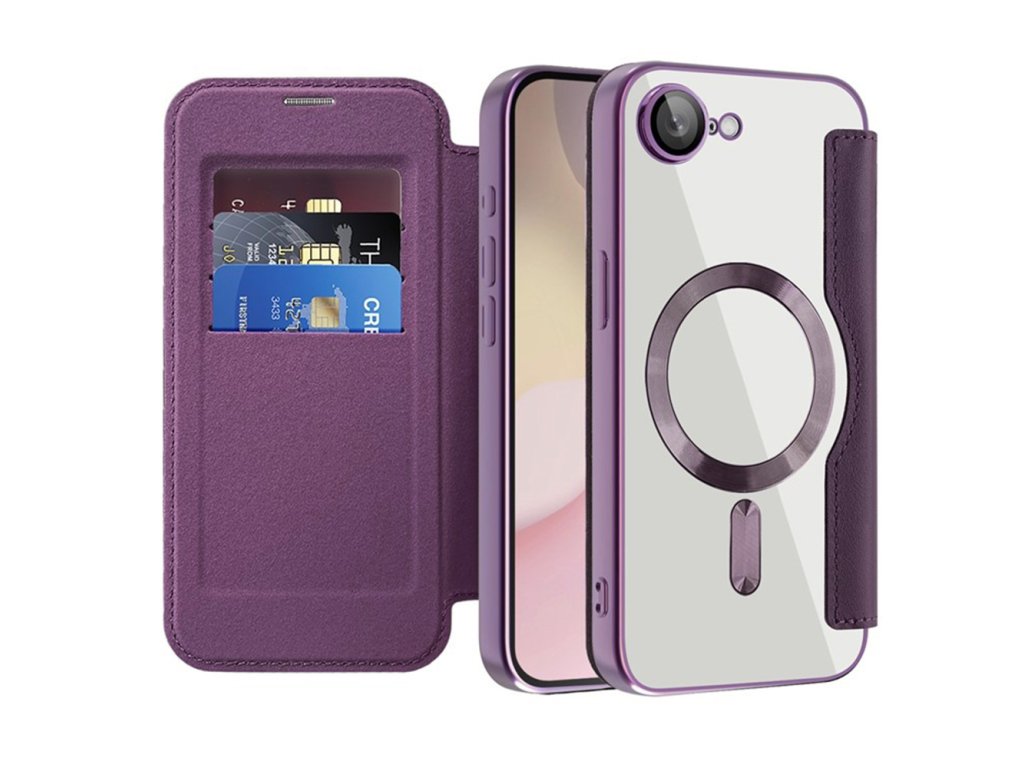 Techsuit - SmartMag Book puzdro na iPhone 16e - fialové