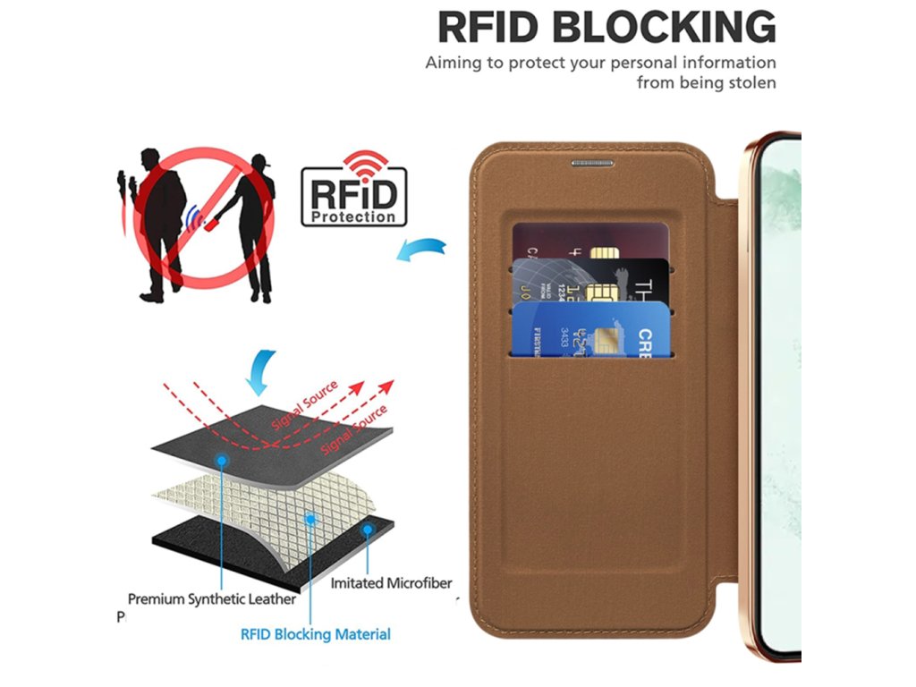 Určené na uloženie bankových alebo prístupových kariet, tento priestor blokuje neželané skenovania, čo poskytuje digitálnu bezpečnosť.