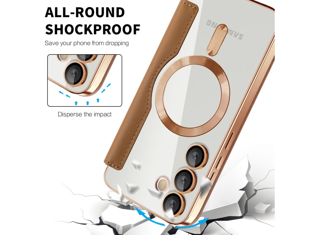 Puzdro Samsung Galaxy S24 FE peňaženka umožňuje okamžité zarovnanie s akýmkoľvek príslušenstvom MagSafe, bez sklzu a bez rušivých vplyvov.