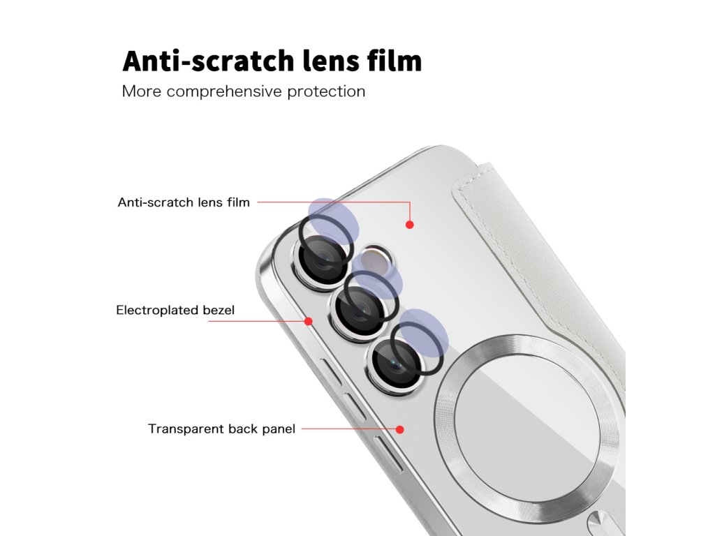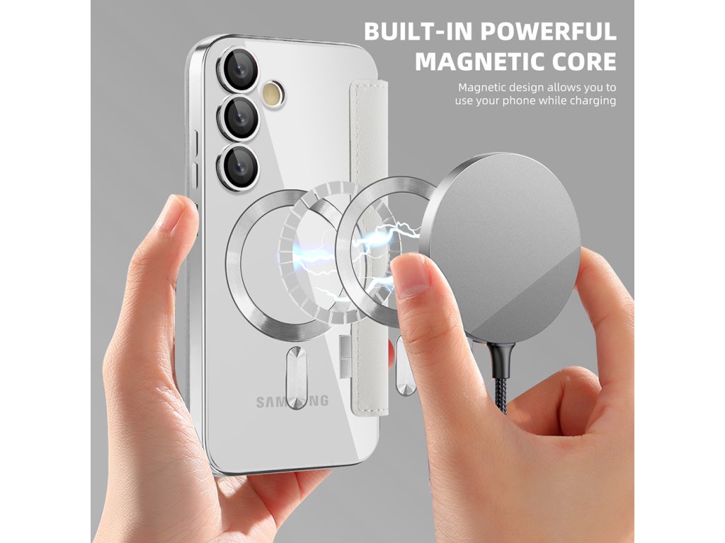 Puzdro Samsung Galaxy S24 FE peňaženka umožňuje okamžité zarovnanie s akýmkoľvek príslušenstvom MagSafe, bez sklzu a bez rušivých vplyvov.