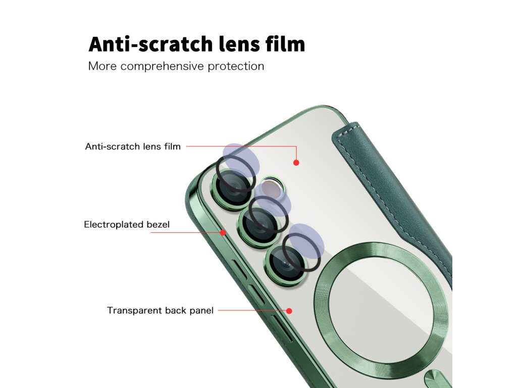 Puzdro Samsung Galaxy S24 FE peňaženka umožňuje okamžité zarovnanie s akýmkoľvek príslušenstvom MagSafe, bez sklzu a bez rušivých vplyvov.