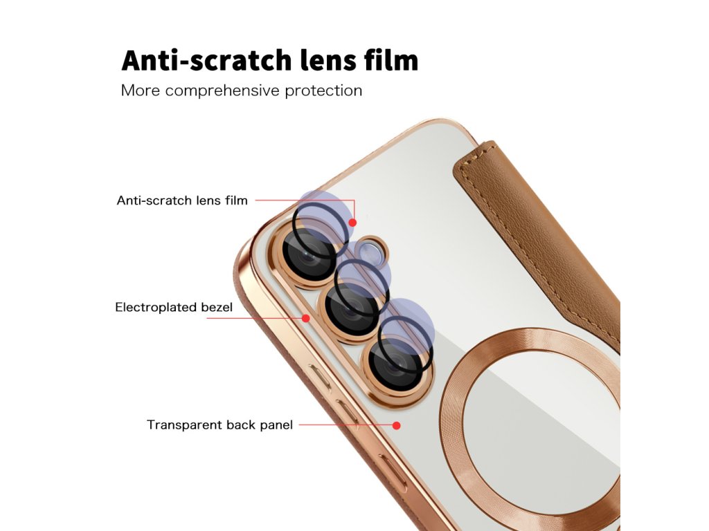 Puzdro Samsung Galaxy S25 Plus peňaženka umožňuje okamžité zarovnanie s akýmkoľvek príslušenstvom MagSafe, bez sklzu a bez rušenia.