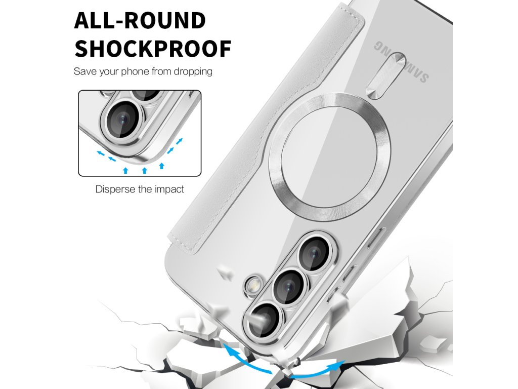 Puzdro Samsung Galaxy S25 Plus peňaženka umožňuje okamžité zarovnanie s akýmkoľvek príslušenstvom MagSafe, bez sklzu a bez rušenia.