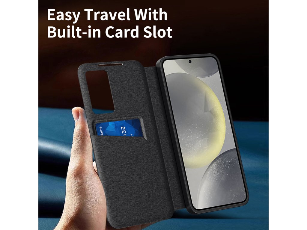 Púzdro Samsung Galaxy S22 5G, vyrobené z ekologickej kože, oblieka telefón do jemnej textúry, ktorá nielen vyzerá, ale aj pôsobí prémiovo.