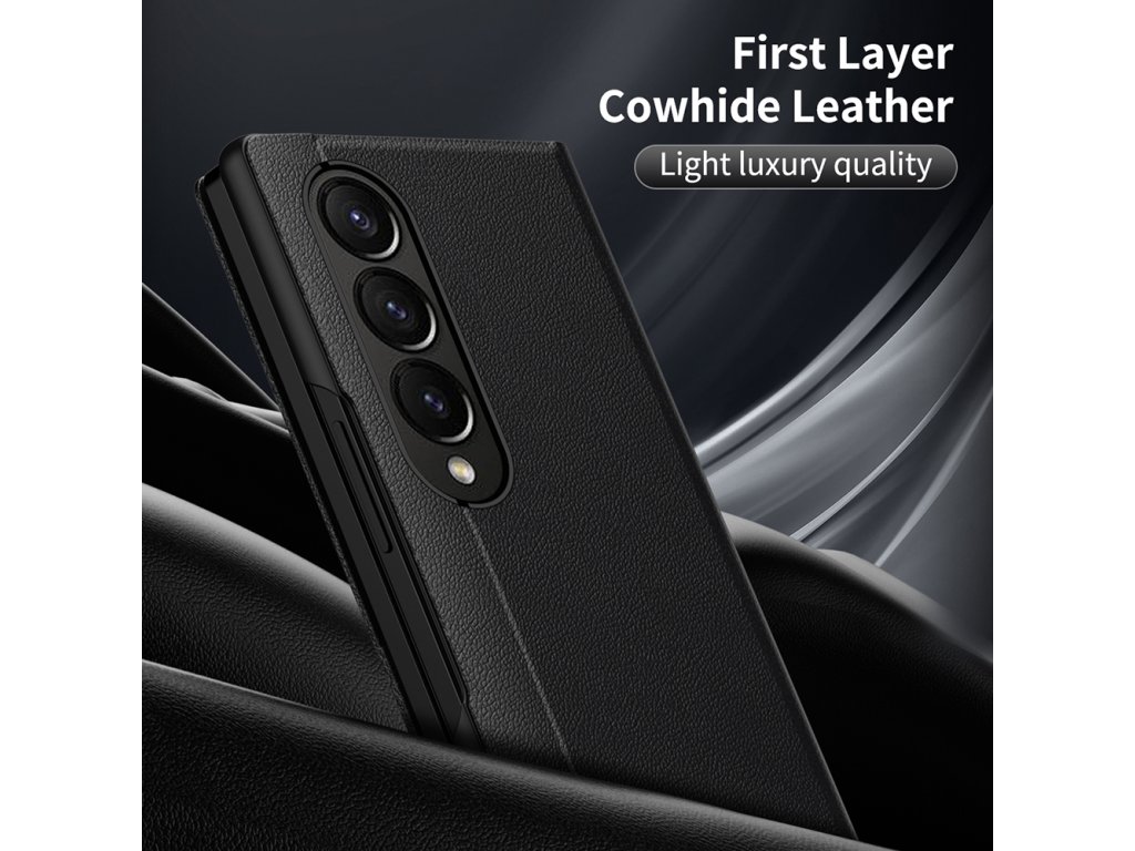 Puzdro Samsung Galaxy Z Fold3 5G, vyrobené z ekologickej kože, oblieka telefón do jemnej textúry, ktorá nielen vyzerá, ale aj pôsobí prémiovo.