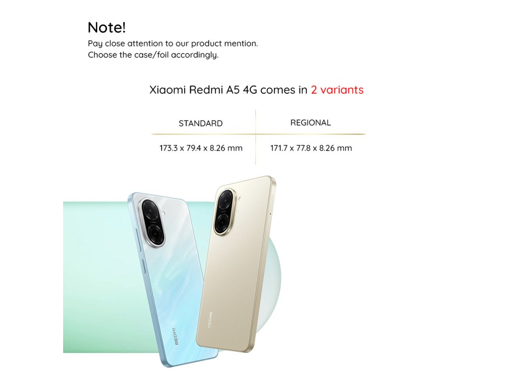 Pozor! Telefón Xiaomi Redmi A5 4G je dostupný v dvoch rôznych variantoch veľkostí, v závislosti od krajiny, v ktorej sa predáva:
