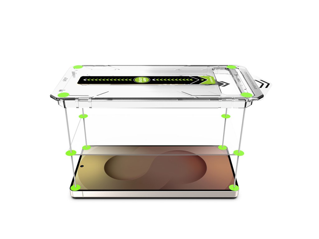 Sklo pre Samsung Galaxy S26 prichádza s inteligentným inštalačným systémom – rámom s vodičmi, ktorý zarovnáva ochranu presne s obrazovkou.