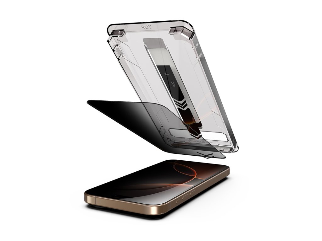 Polymerový rám s kalibrovaním je milimetrovo navrhnutý pre iPhone 16 Pro, umožňujúc automatické zarovnanie fólie na obrazovku bez nutnosti predchádzajúcich skúseností.
