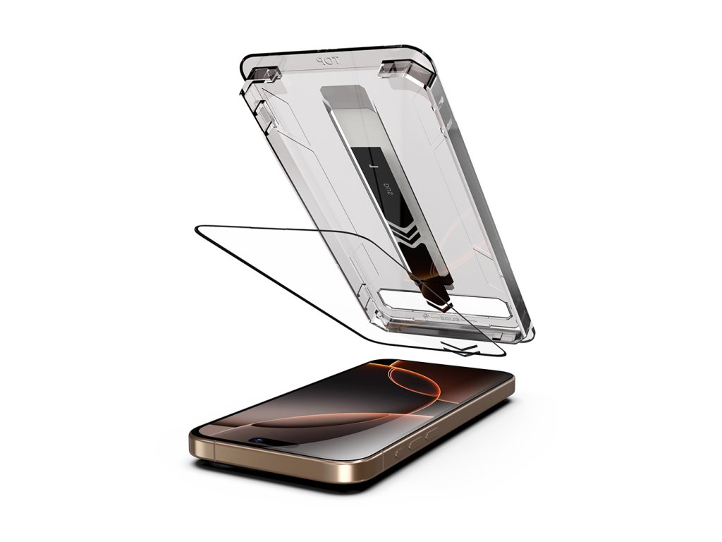 Kazeta z kalibrovaného polyméru je milimetrovo navrhnutá pre iPhone 16 Pro Max, umožňujúca automatické zarovnanie fólie na displej bez potreby predchádzajúcich skúseností.
