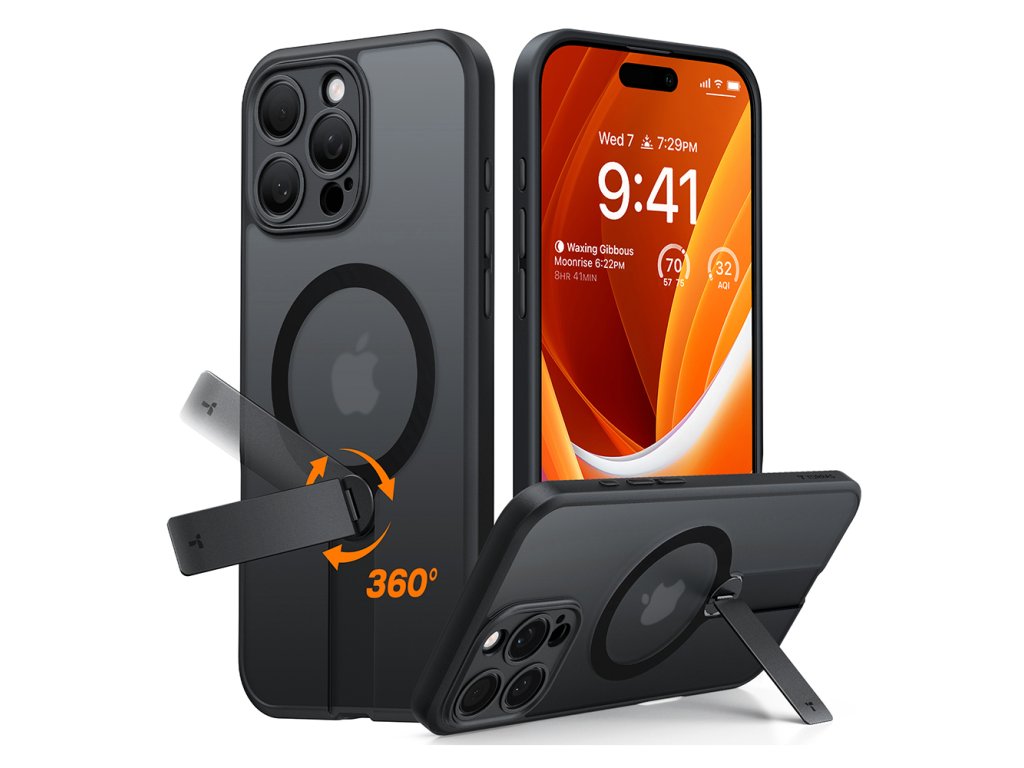Torras – Pstand Spin MagSafe magnetický stojanový kryt na iPhone 16 Pro – čierny