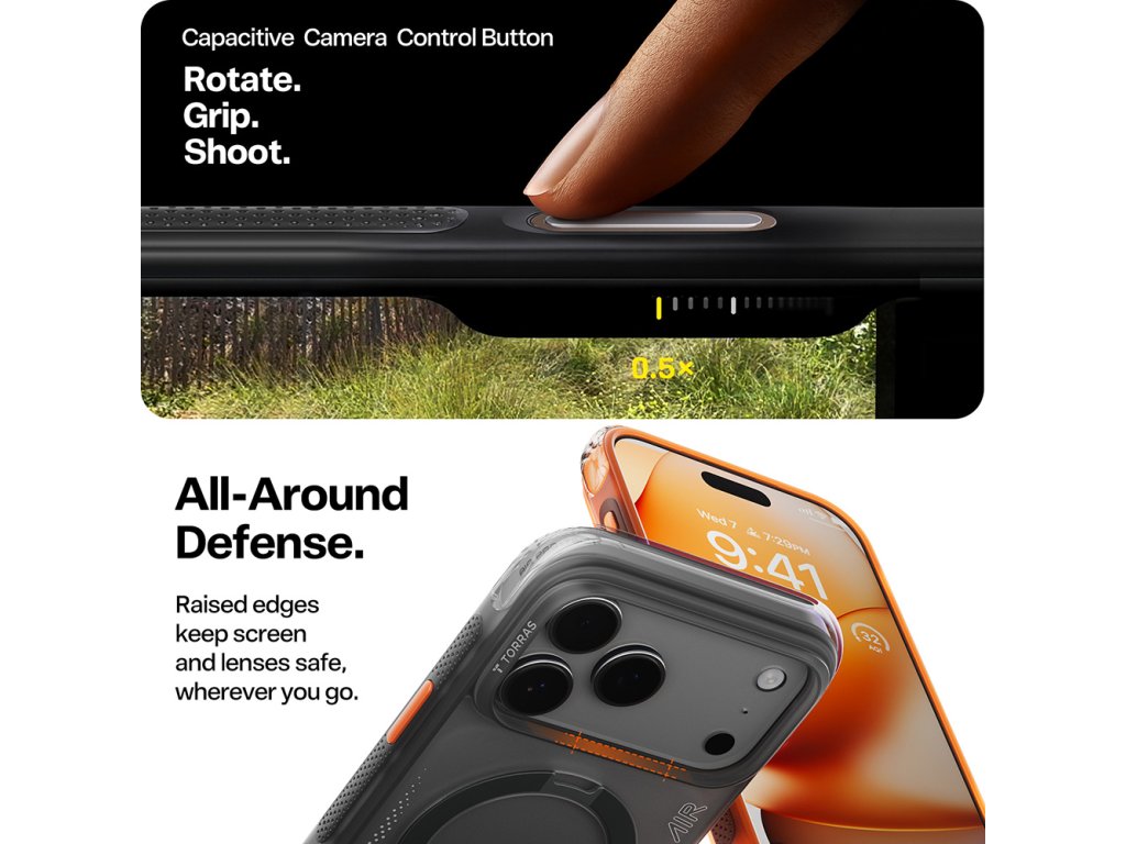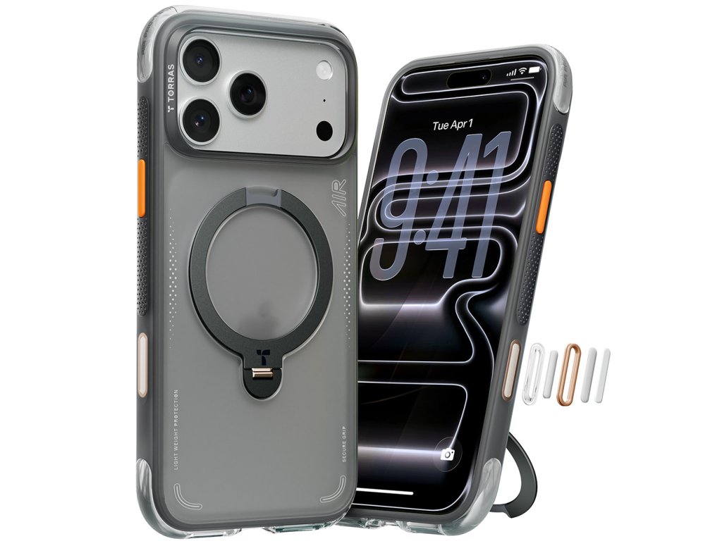 Torras - Ostand Spin Air Series kryt so stojanom pre iPhone 17 Pro – čierny (Shadow Black)