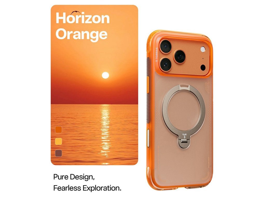 Torras - Ostand Spin Air Series kryt so stojanom pre iPhone 17 Pro – oranžový (Horizon Orange)