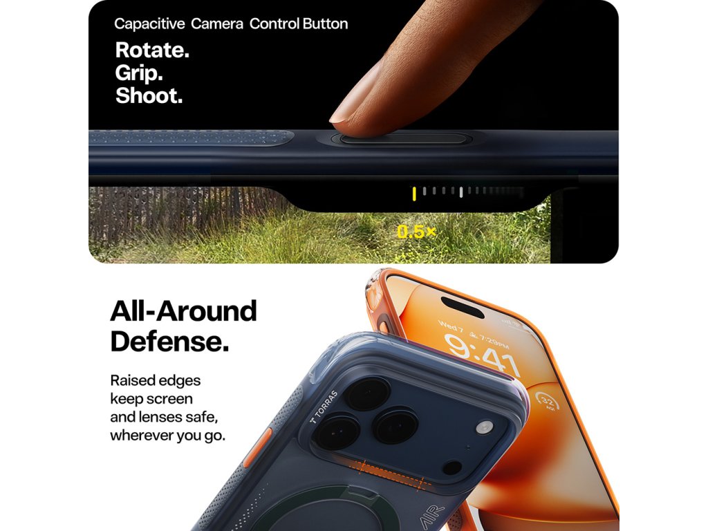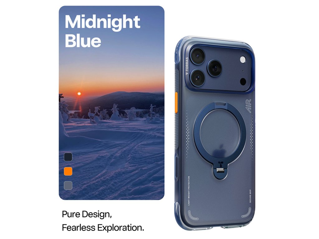 Torras - Ostand Spin Air Series kryt so stojanom pre iPhone 17 Pro – tmavomodrý (Midnight Blue)
