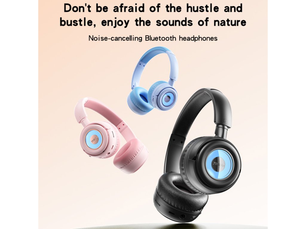 Yesido - EP06 bezdrôtové slúchadlá pre deti, Bluetooth 5.3, mikrofón, podpora audio kábla, 500mAh – čierne