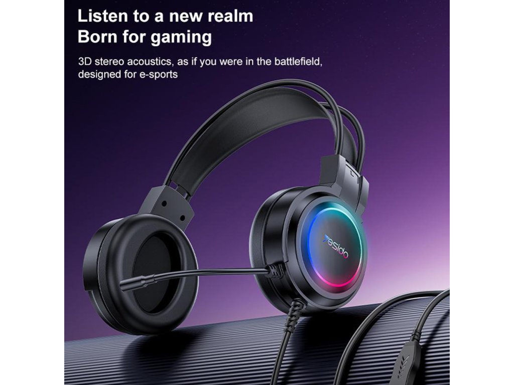 Yesido - Wired Headphones (EK05) drôtové herné slúchadlá s mikrofónom, USB, RGB LED podsvietenie – čierne