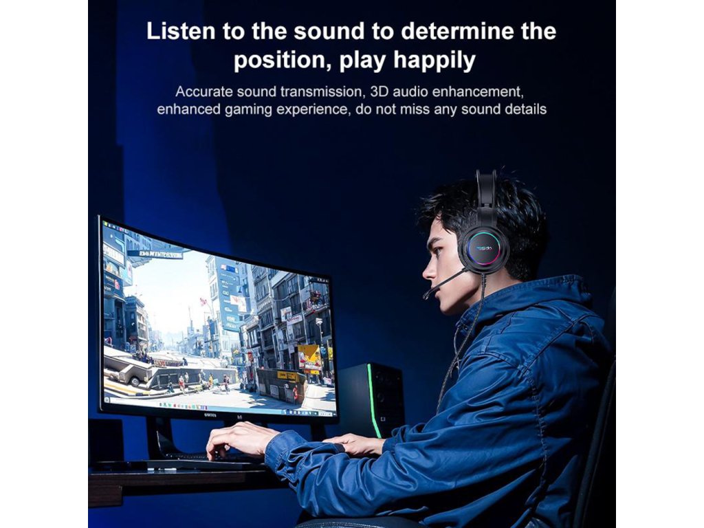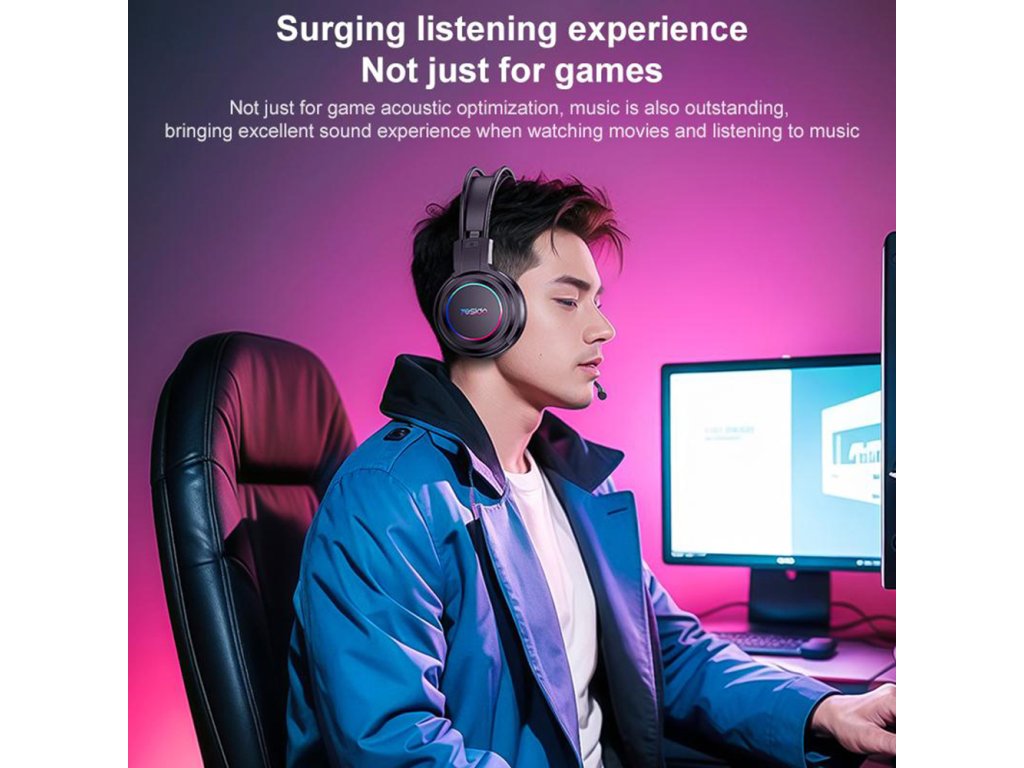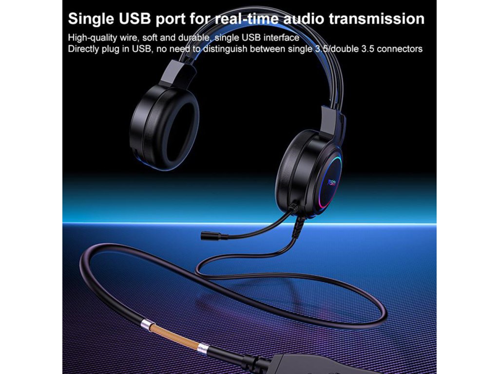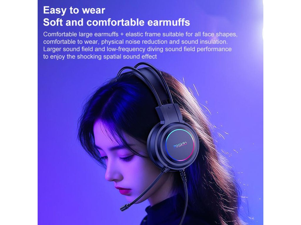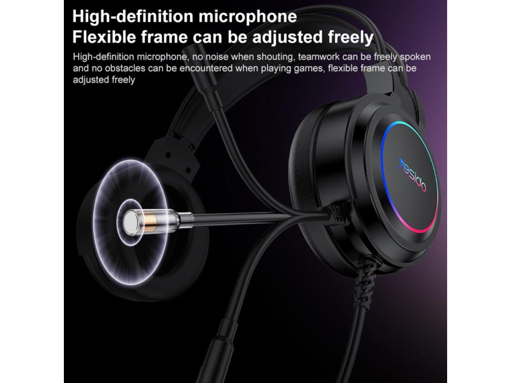 Yesido - Wired Headphones (EK05) - for Gaming, USB, with Microphone, RGB LED Lights - Black