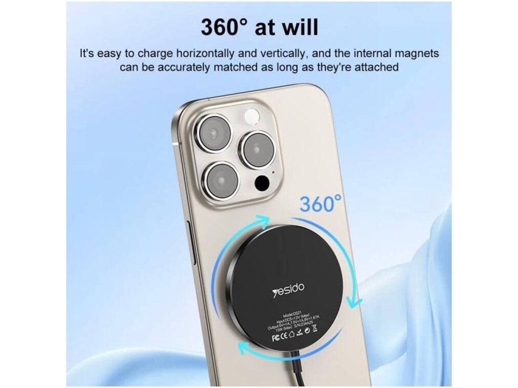 Bezdrôtová nabíjačka Yesido ponúka až 15W výkonu pre rýchle nabíjanie. Vďaka technológii MagSafe môžete efektívne a jednoducho nabíjať zariadenia iPhone.
