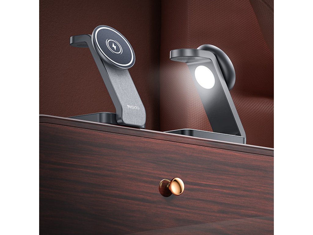 Yesido - Wireless Charging Station (DS26) magnetická bezdrôtová nabíjacia stanica pre telefón, hodinky a slúchadlá, skladacia, stojan, nočné svetlo, 15 W – sivá