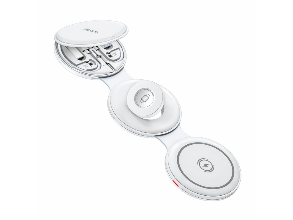 Yesido - Wireless Charging Station 5in1 (DS29) bezdrôtová nabíjacia stanica 5 v 1 pre telefón, slúchadlá a Apple Watch, magnetická, skladacia, stojan – biela