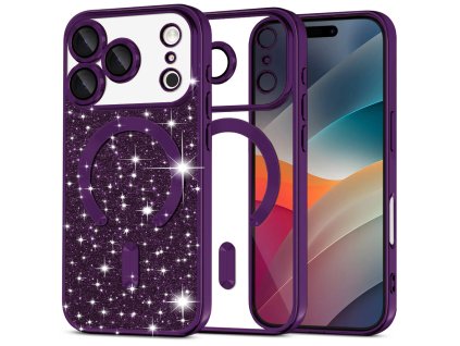Techsuit – Luxury Glitter MagSafe kryt na iPhone 17 Pro Max – tmavofialový